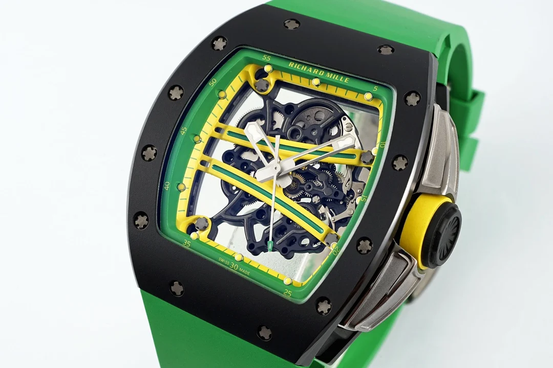 RM61-01 APSF Black Ceramic/RU Skeleton Dial on Green Rubber Strap