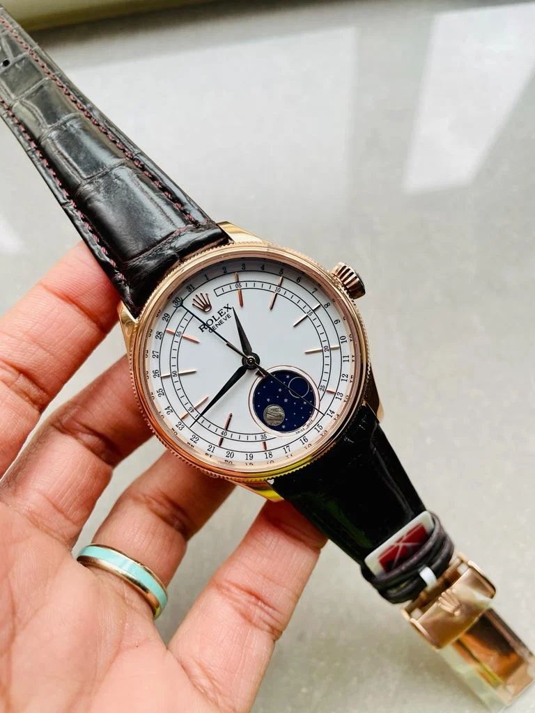 Rolex Cellini Moonphase 50535 RG White Dial on Leather Strap  Super Clone