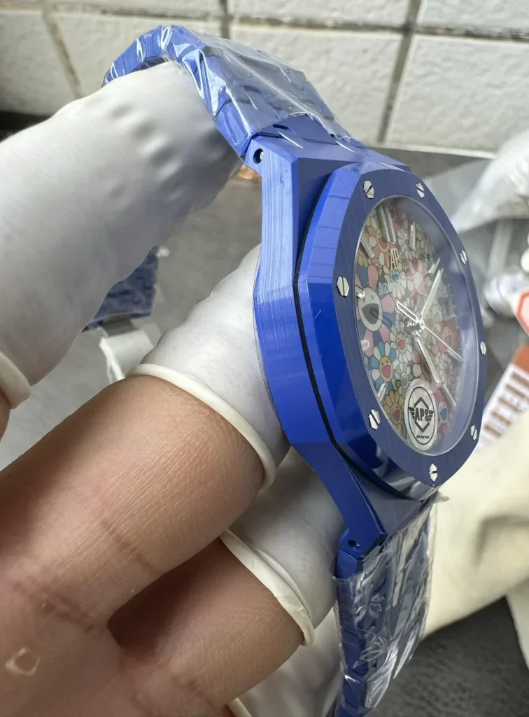 Royal Oak 15500 Blue Ceramic APSF 1:1 Best Edition Celebration Dial On Blue Ceramic Bracelet SA4302 Super Clone