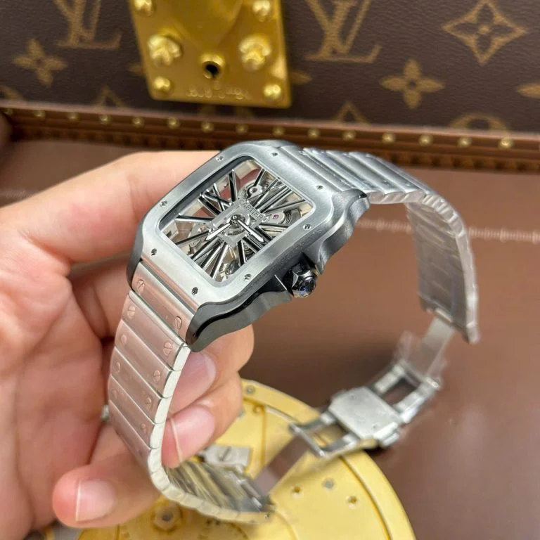 Santos de Cartier Skeleton PVD MLF Skeleton Black Dial on SS SmartLink Bracelet 9611MC Super Clone